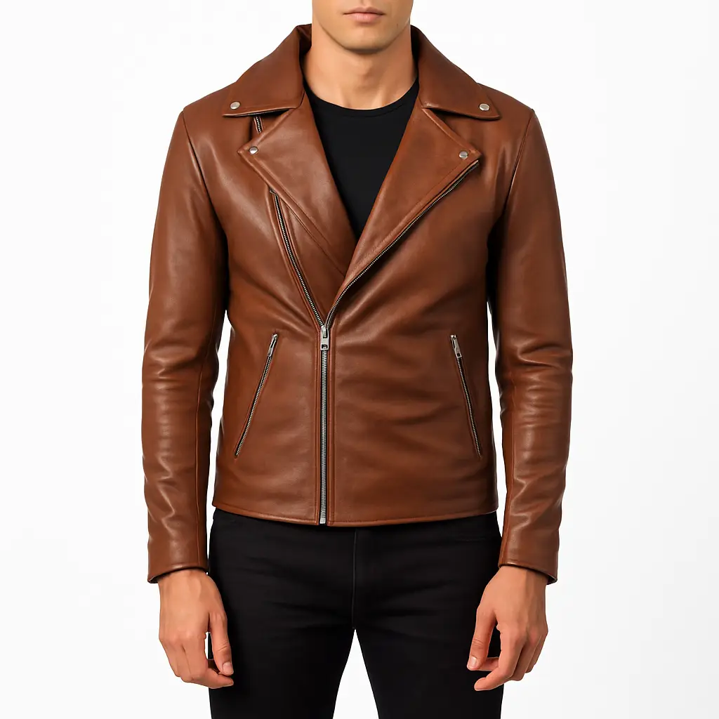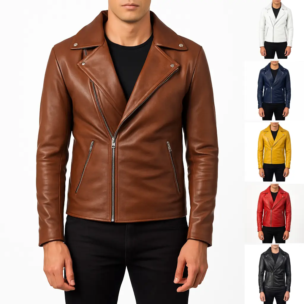 Chiodo da uomo artigianale realizzato in vera pelle di agnello 100%. Tutti i nostri prodotti sono realizzati dalla selezione dei migliori pellami italiani di alta qualità e cuciti a mano dai nostri artigiani. Il nostro obiettivo è di offrire prodotti del vero Made in Italy.